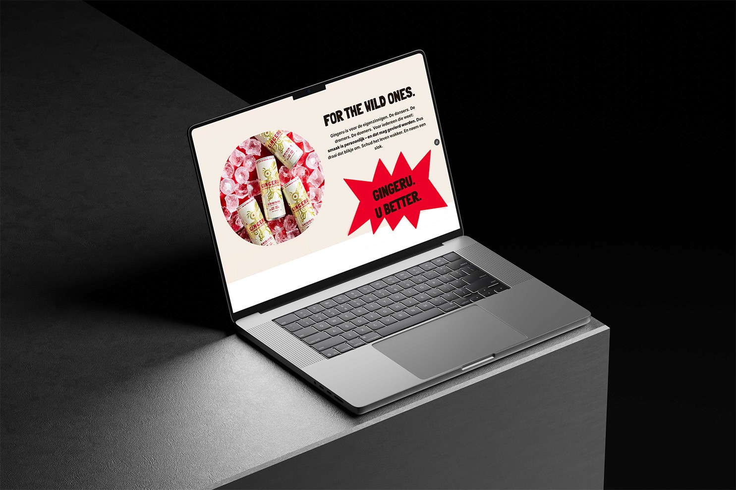 Het webdesign voor Gingeru is opgezet met een frisse en energieke uitstraling die past bij het karakter van het merk. Door een strak en overzichtelijk ontwerp te combineren met levendige productfotografie, komt de beleving van de drank direct tot leven. De focus lag op een minimalistische structuur die de aandacht volledig op het product en de merkverhaal richt, terwijl de visuele elementen zorgen voor een moderne en toegankelijke uitstraling.